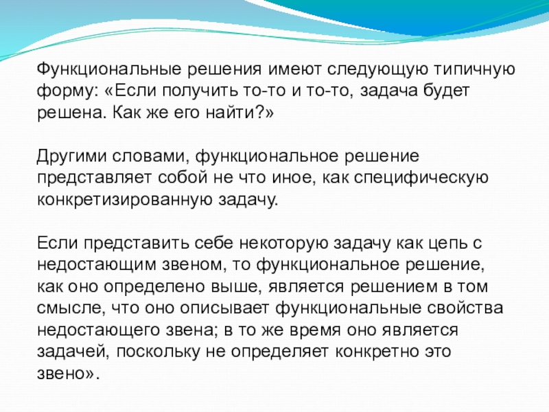 Слайд 13Функциональные решения имеют следующую типичную форму: «Если получить то-то и то-то,