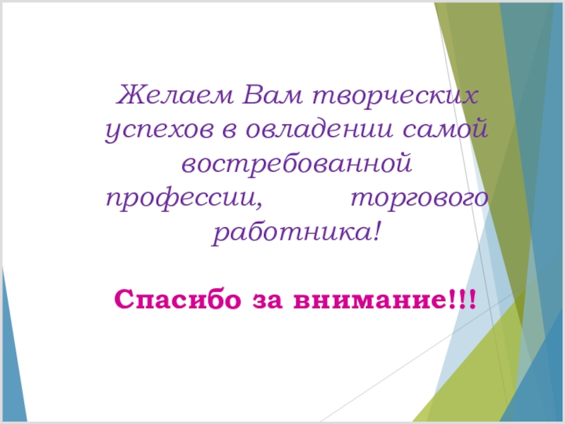 Слайд 13Желаем Вам творческих успехов в овладении самой востребованной профессии,