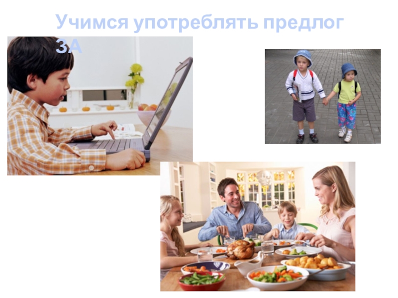 Слайд 12Учимся употреблять предлог ЗА