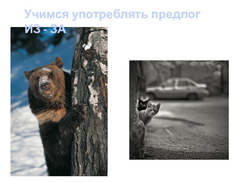 Слайд 14Учимся употреблять предлог ИЗ - ЗА