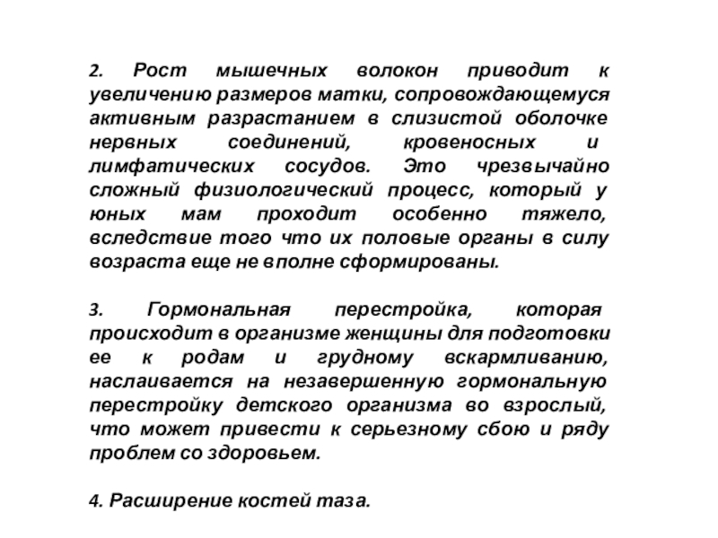 3. Гормональная перестройка, которая происходит в организме женщины для подготовки ее к родам и грудному вскармливанию, наслаивается на незавершенную гормональную перестройку детского организма во взрослый, что может привести к серьезному сбою и ряду проблем со здоровьем.