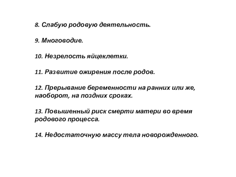 13. Повышенный риск смерти матери во время родового процесса.