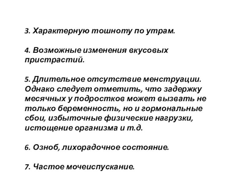 Слайд 163. Характерную тошноту по утрам.