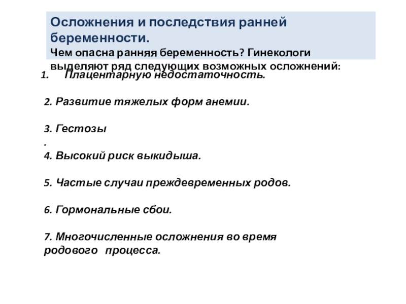 Слайд 11Осложнения и последствия ранней беременности.