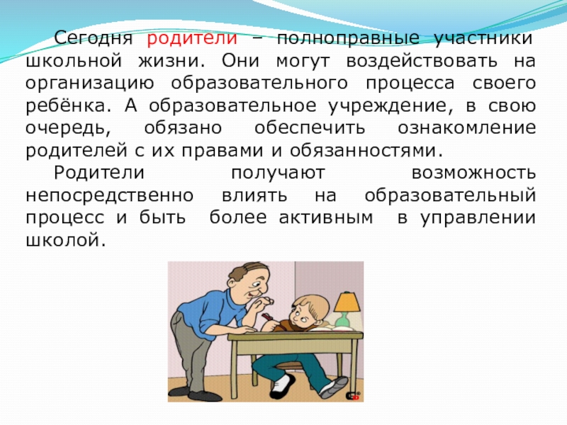 Слайд 32 Сегодня родители – полноправные участники школьной жизни. Они могут воздействовать на