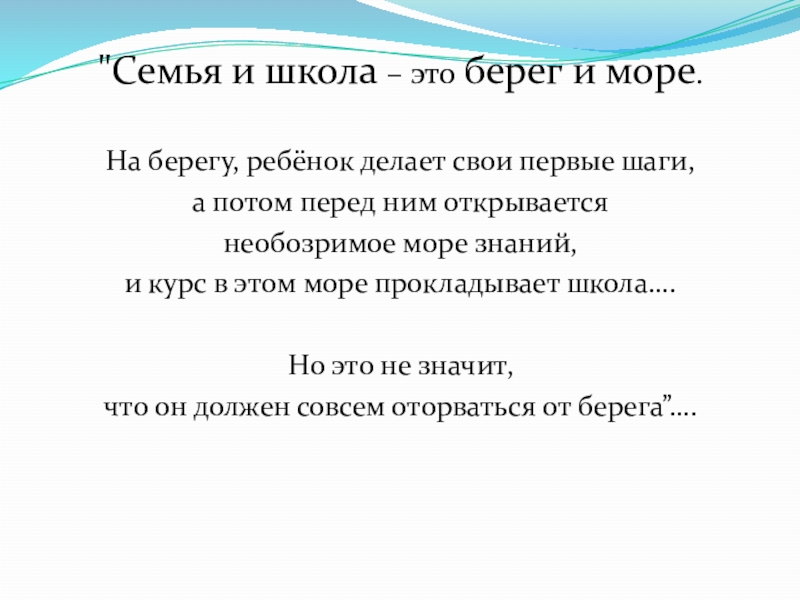 Слайд 5"Семья и школа – это берег и море.