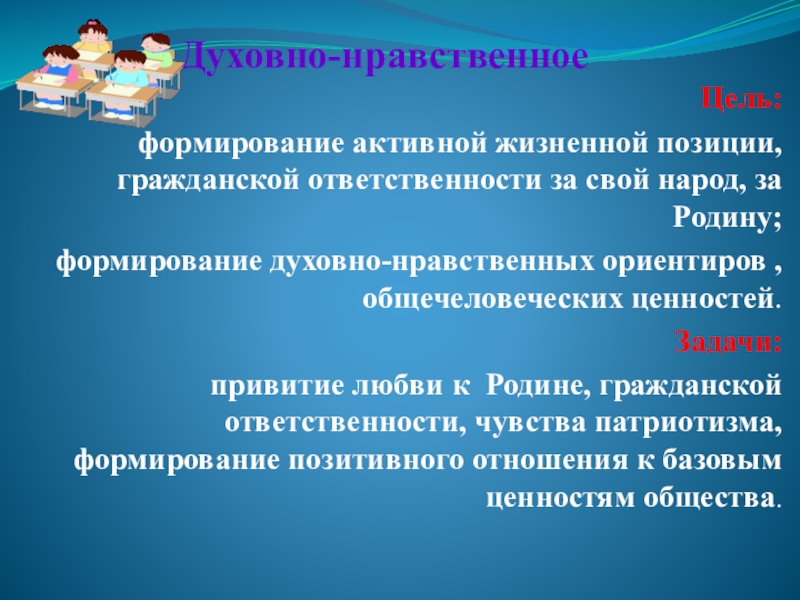 формирование активной жизненной позиции, гражданской ответственности за свой народ, за Родину;