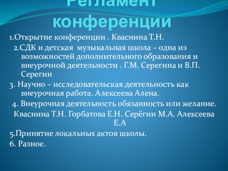 1.Открытие конференции . Кваснина Т.Н.