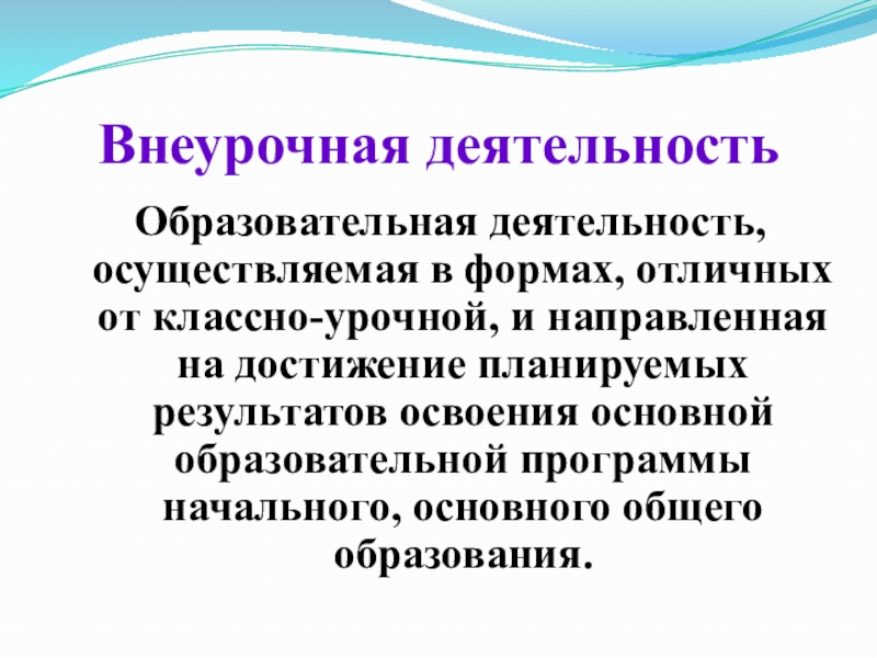 Слайд 17Образовательная деятельность, осуществляемая в формах, отличных от классно-урочной, и направленная на