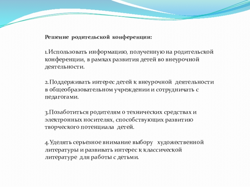 Слайд 35Решение родительской конференции: