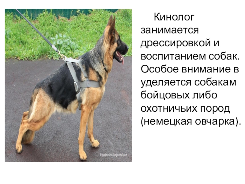 Слайд 3 Кинолог занимается дрессировкой и воспитанием собак.