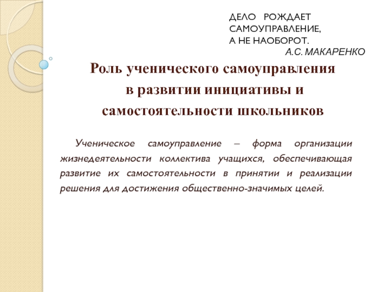 ДЕЛО РОЖДАЕТ САМОУПРАВЛЕНИЕ,
