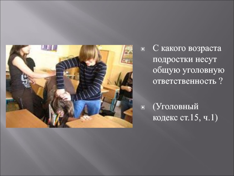 Слайд 5С какого возраста подростки несут общую уголовную ответственность ?