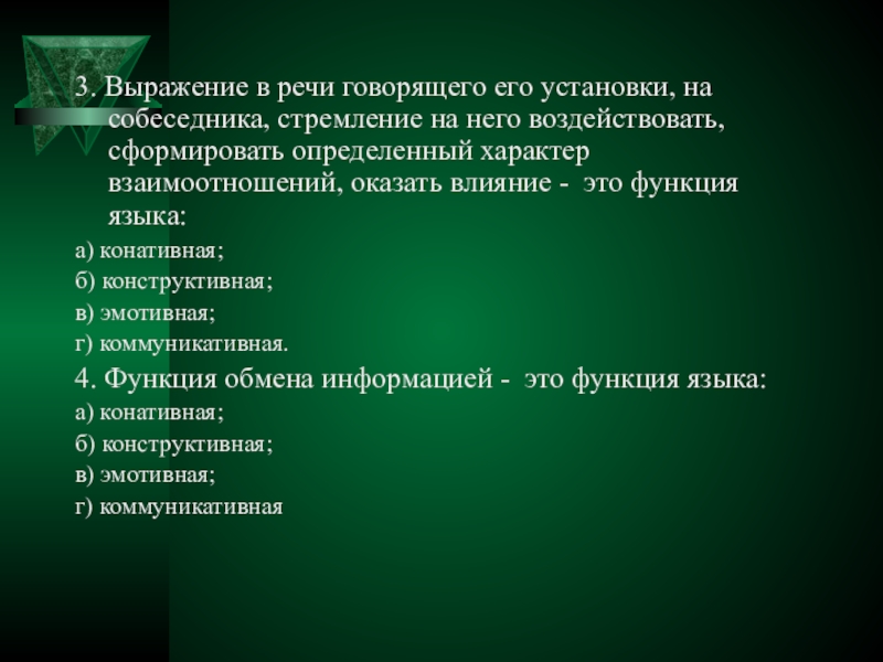 Слайд 63. Выражение в речи говорящего его установки, на собеседника, стремление на