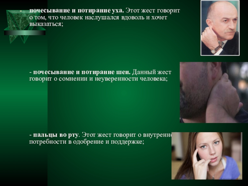 Слайд 12почесывание и потирание уха. Этот жест говорит о том, что человек