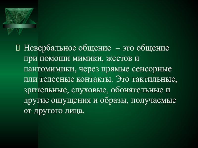 Слайд 9Невербальное общение – это общение при помощи мимики, жестов и пантомимики,