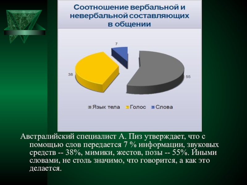 Слайд 10Австралийский специалист А. Пиз утверждает, что с помощью слов передается 7