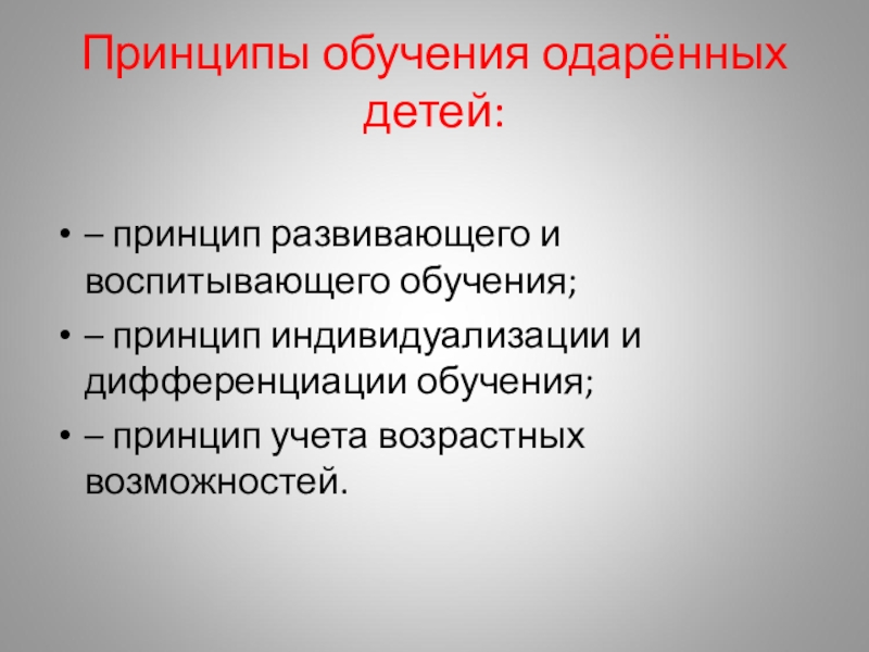 Применительно к обучению интеллектуально одаренных учащихся, безусловно, ведущими