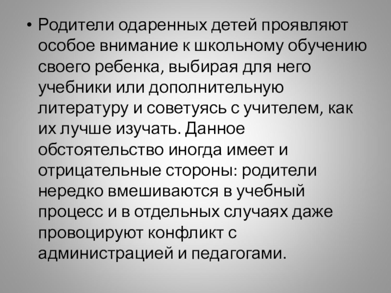 Родители одаренных детей проявляют особое внимание к школьному обучению своего ребенка,