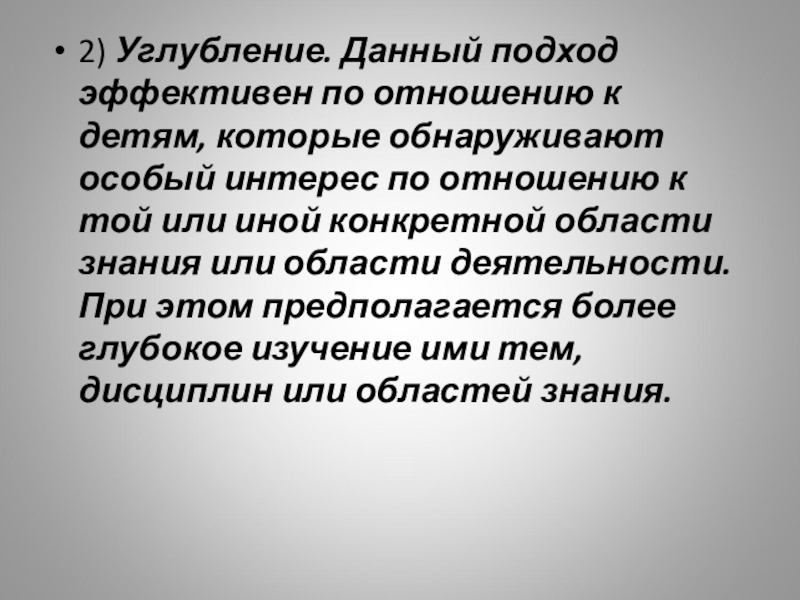 2) Углубление. Данный подход эффективен по отношению к детям, которые обнаруживают