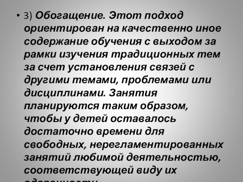 3) Обогащение. Этот подход ориентирован на качественно иное содержание обучения с