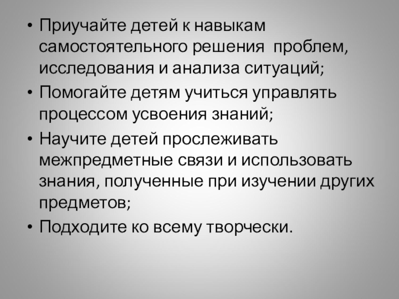 Приучайте детей к навыкам самостоятельного решения проблем, исследования и анализа ситуаций;