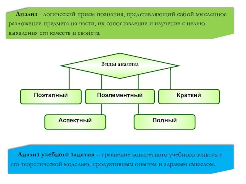 Анализ учебного занятия – сравнение конкретного учебного занятия с его теоретической моделью, продуктивным опытом и здравым смыслом.