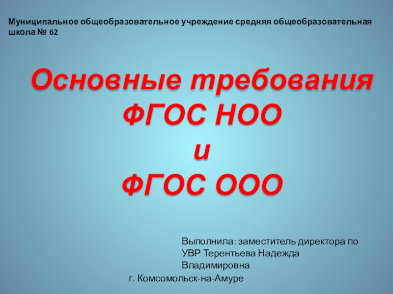 Выполнила: заместитель директора по УВР Терентьева Надежда Владимировна