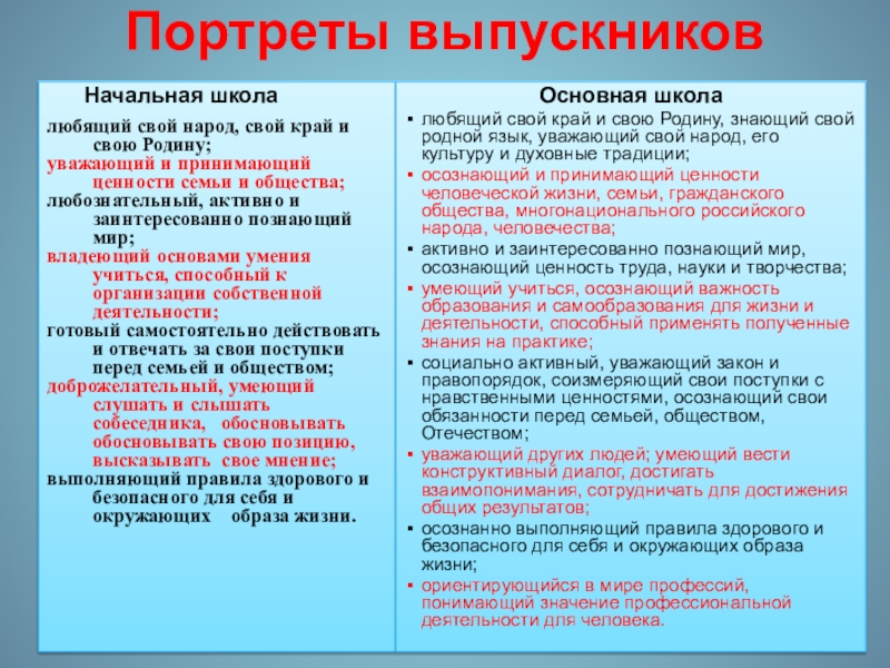 Позиции, характеризующие ученика основной школы, — это преемственная, но углубленная и дополненная версия характеристики выпускника начальной школы.