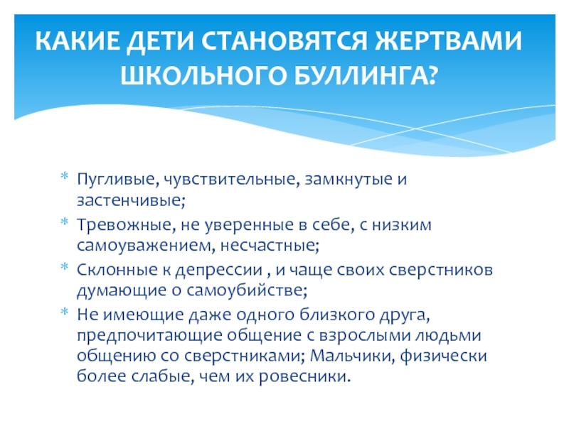 КАКИЕ ДЕТИ СТАНОВЯТСЯ ЖЕРТВАМИ ШКОЛЬНОГО БУЛЛИНГА?