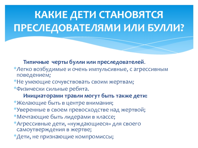 КАКИЕ ДЕТИ СТАНОВЯТСЯ ПОСЛЕДОВАТЕЛЯМИ БУЛЛИ ?