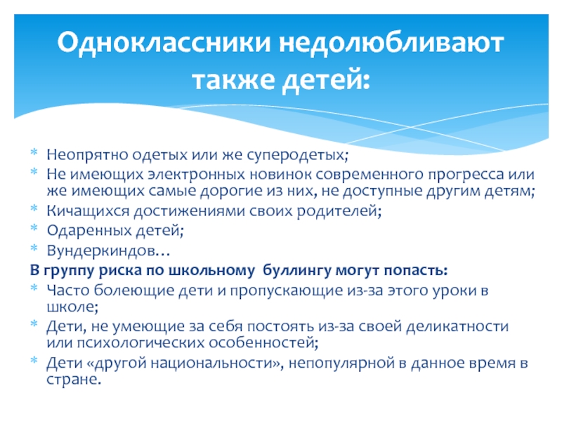 Одноклассники недолюбливают также детей: