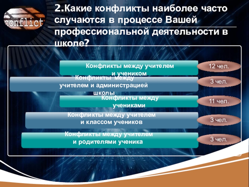 2.Какие конфликты наиболее часто случаются в процессе Вашей профессиональной деятельности в школе?