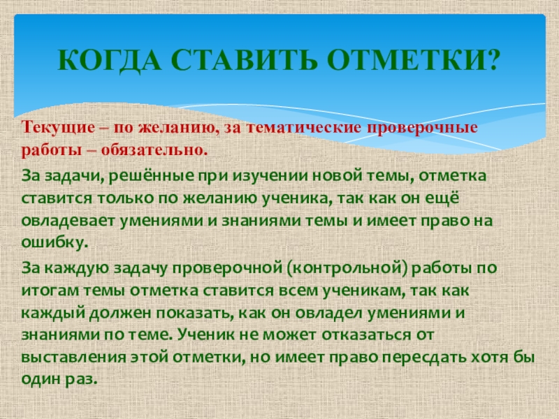 КОГДА СТАВИТЬ ОТМЕТКИ?