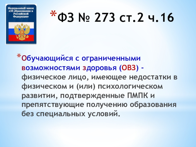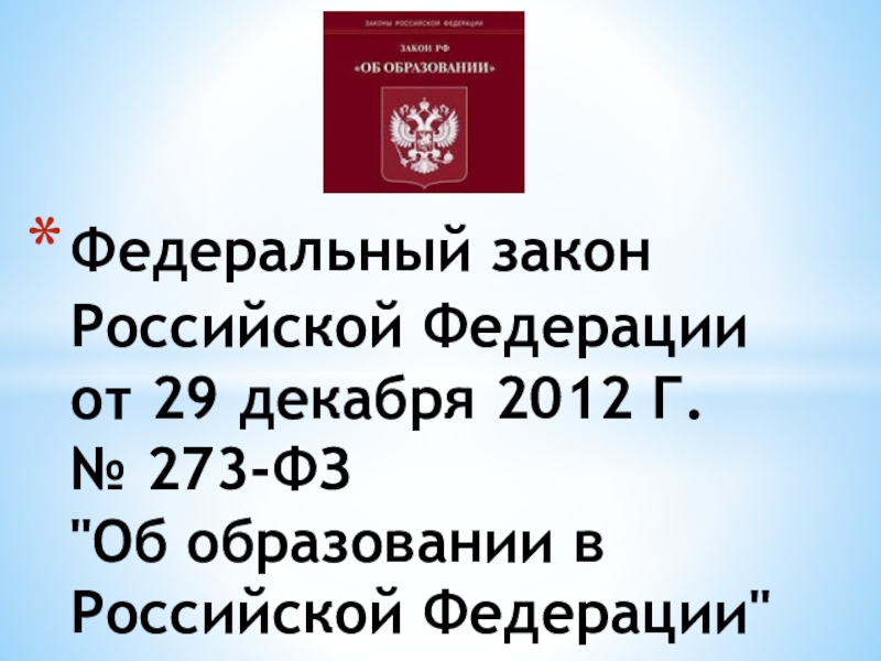 Слайд 11ФЗ РФ «Об образовании в Российской Федерации»