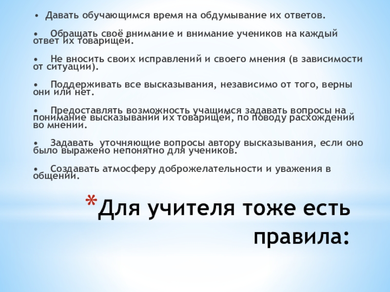 • Задавать уточняющие вопросы автору высказывания, если оно было выражено непонятно для учеников.