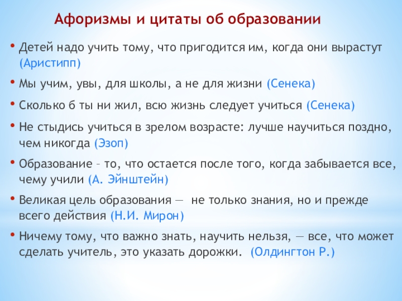 Образование – то, что остается после того, когда забывается все, чему учили (А. Эйнштейн)