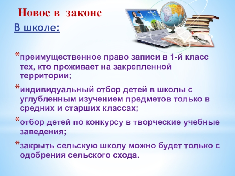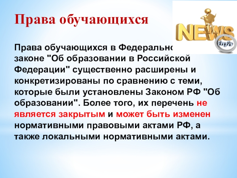Слайд 21Федеральный закон «Об образовании в Российской Федерации» дает новые по сравнению