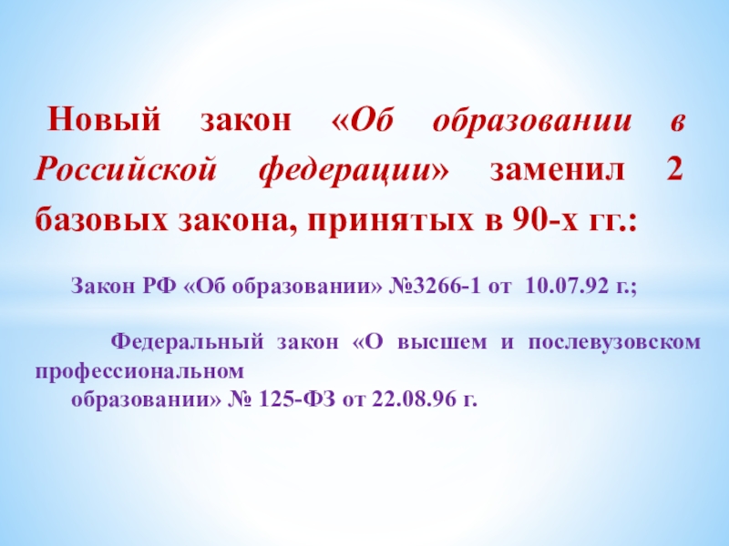 Новый закон «Об образовании в Российской федерации» заменил 2 базовых