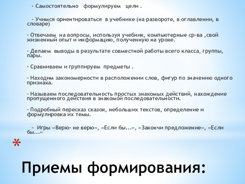 - Игры «Верю- не верю», «Если бы...», «Закончи предложение», «Если бы...»