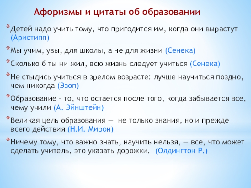 Слайд 111Детей надо учить тому, что пригодится им, когда они вырастут (Аристипп)