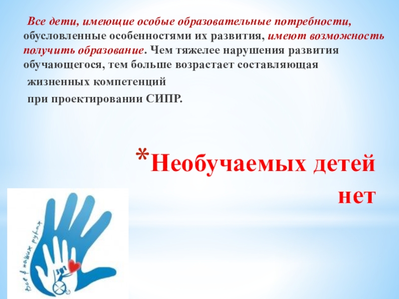 Все дети, имеющие особые образовательные потребности, обусловленные