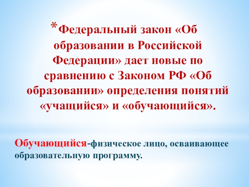 с Законом РФ «Об образовании» определения понятий «учащийся» и «обучающийся».