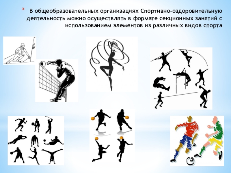 Слайд 109В общеобразовательных организациях Спортивно-оздоровительную деятельность можно осуществлять в формате секционных занятий