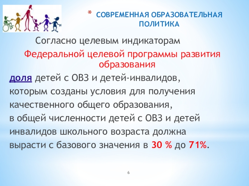 Слайд 6СОВРЕМЕННАЯ ОБРАЗОВАТЕЛЬНАЯ ПОЛИТИКА