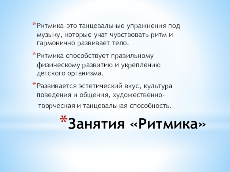 Ритмика способствует правильному физическому развитию и укреплению детского организма.