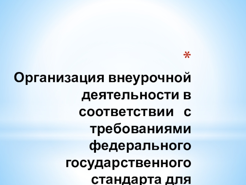 Организация внеурочной деятельности в соответствии с требованиями федерального государственного стандарта