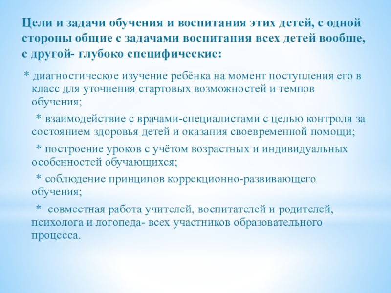 особенностями их развития, имеют возможность получить образование. Чем тяжелее нарушения развития обучающегося, тем больше возрастает составляющая