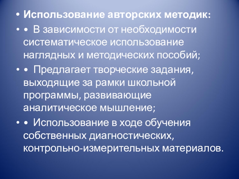 • Использование в ходе обучения собственных диагностических, контрольно-измерительных материалов.