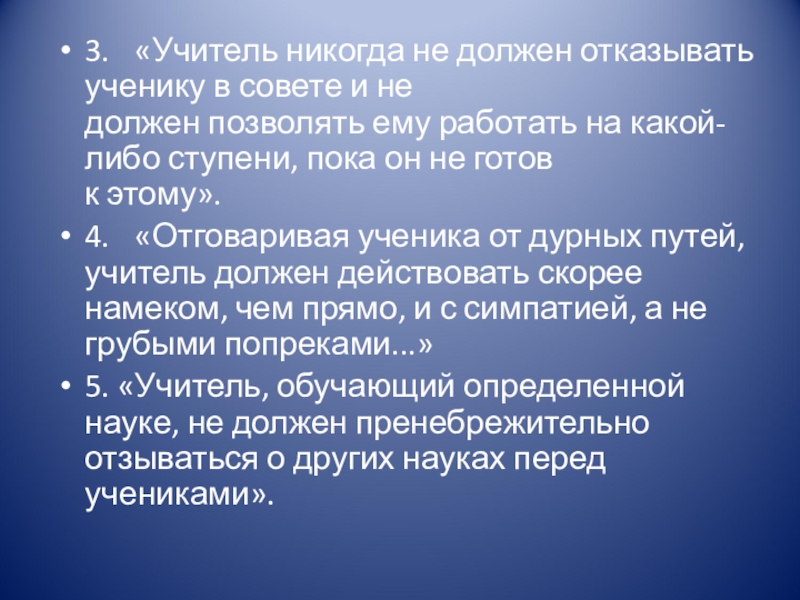 3. «Учитель никогда не должен отказывать ученику в совете и не